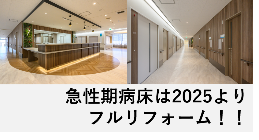 また、急性期一般病床も2025より各階随時フルリフォームを行い、働きやすい綺麗な環境も整えております。