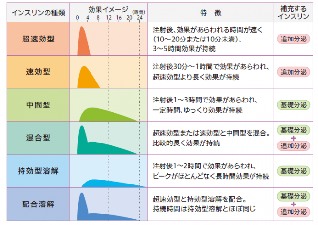 インスリン製剤にはさまざまな種類があり、うまく使い分けることで血糖値の安定を目指すことができます。