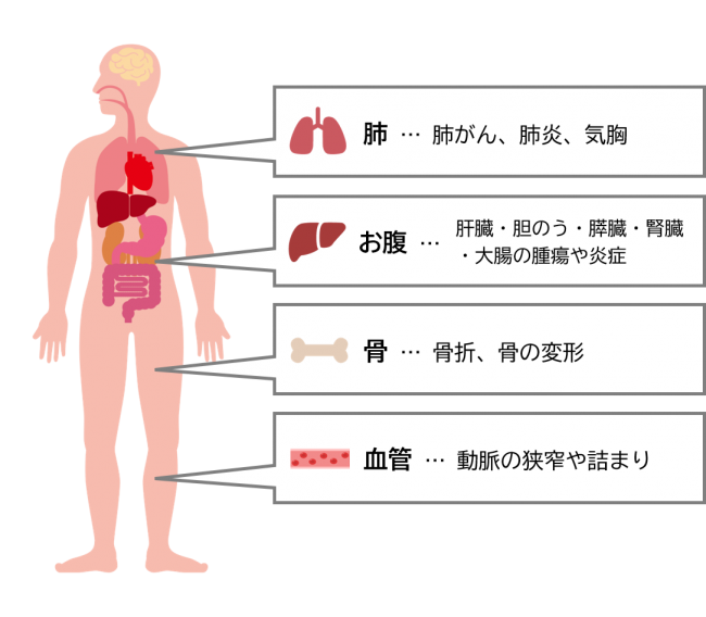 レントゲン検査が「影絵」だとすると、CTは立体的な3Dスキャン。臓器や血管、骨などが重ならずに見えるため、小さな異常も見つけやすいのが特徴です。